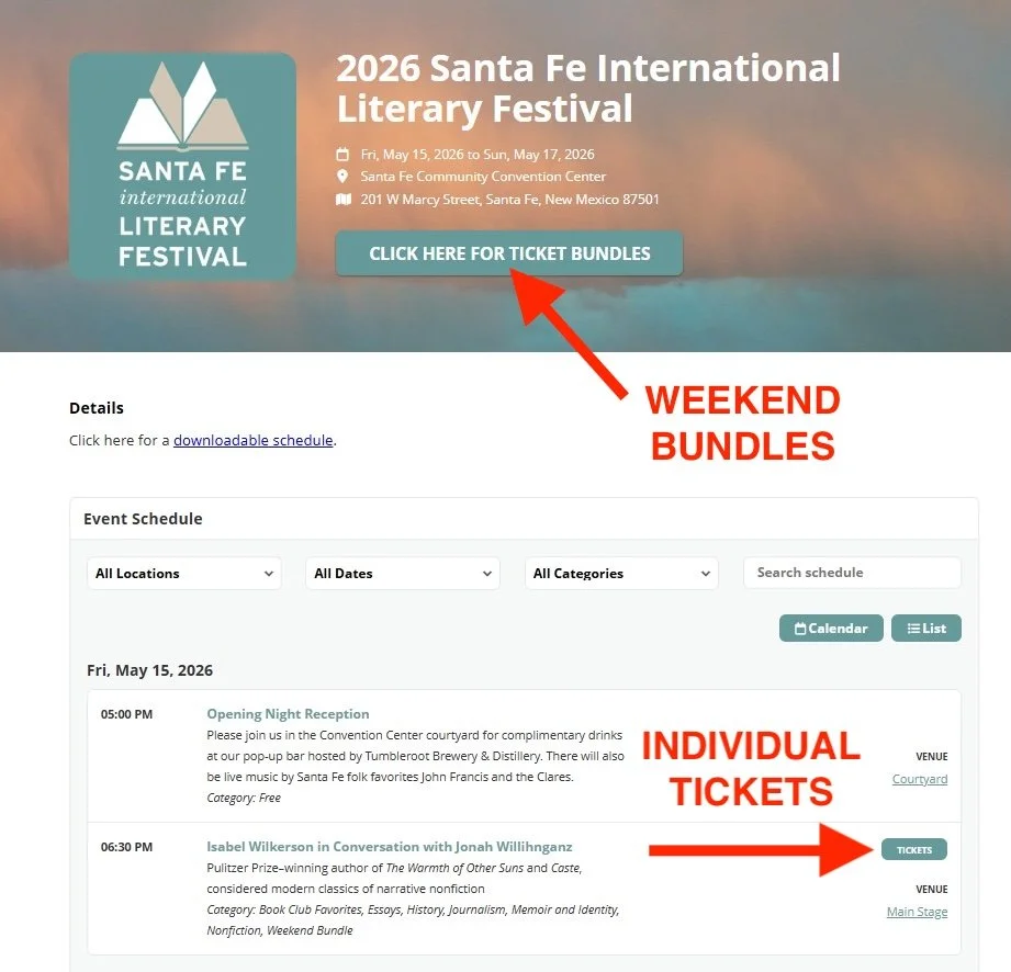 Subject Line: Tickets: 2026 Santa Fe International Literary Festival