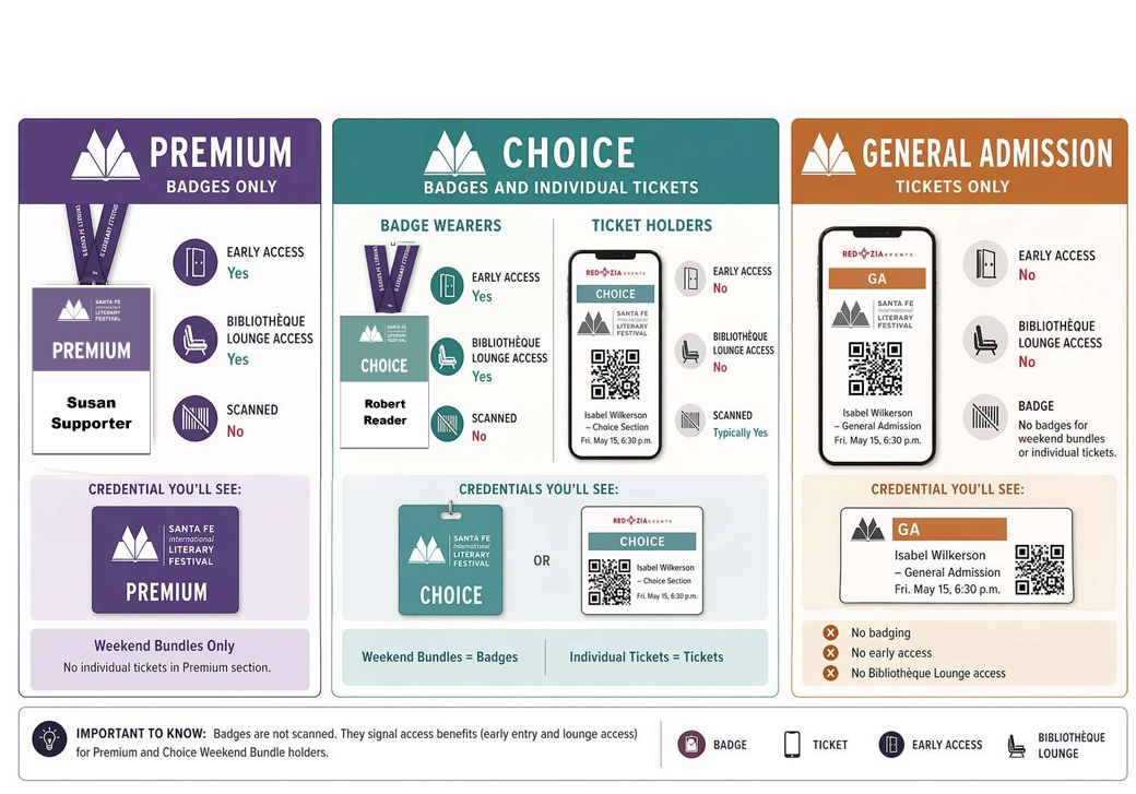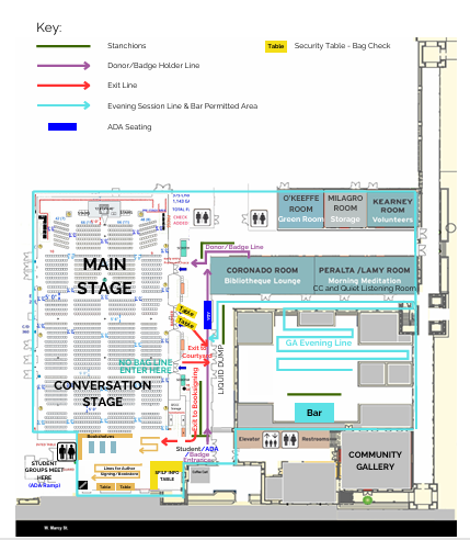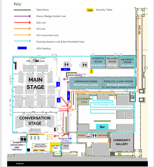 UNTICKETED GUESTS must collect a wristband at the Community Engagement table (located on the southwest corner of the lobby, west of the bookstore)