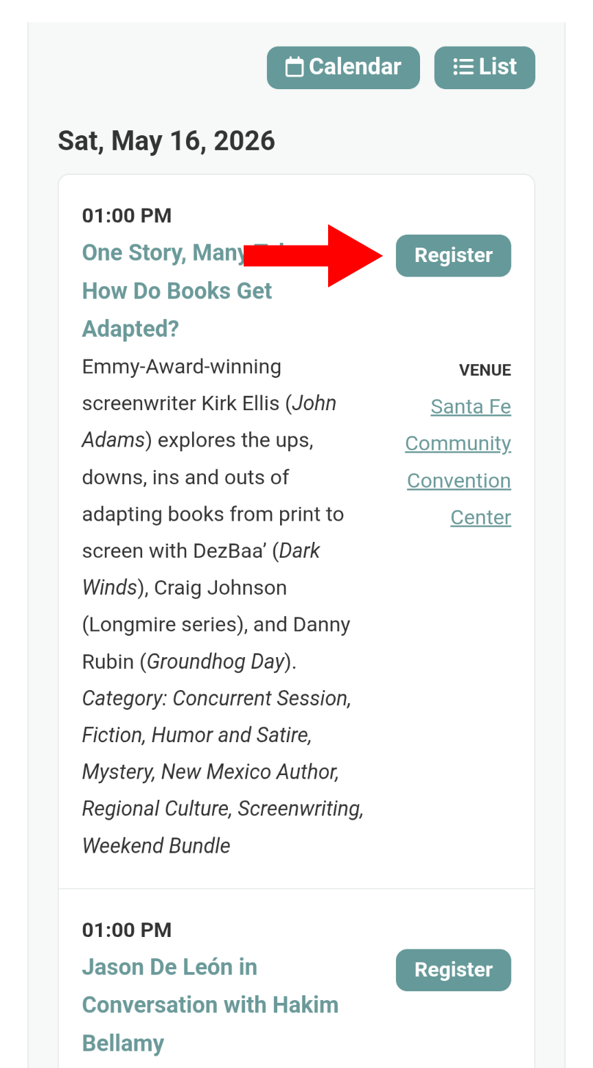 This will be emailed to you from “2026 Santa Fe International Literary Festival <noreply@redziaevents.com>”