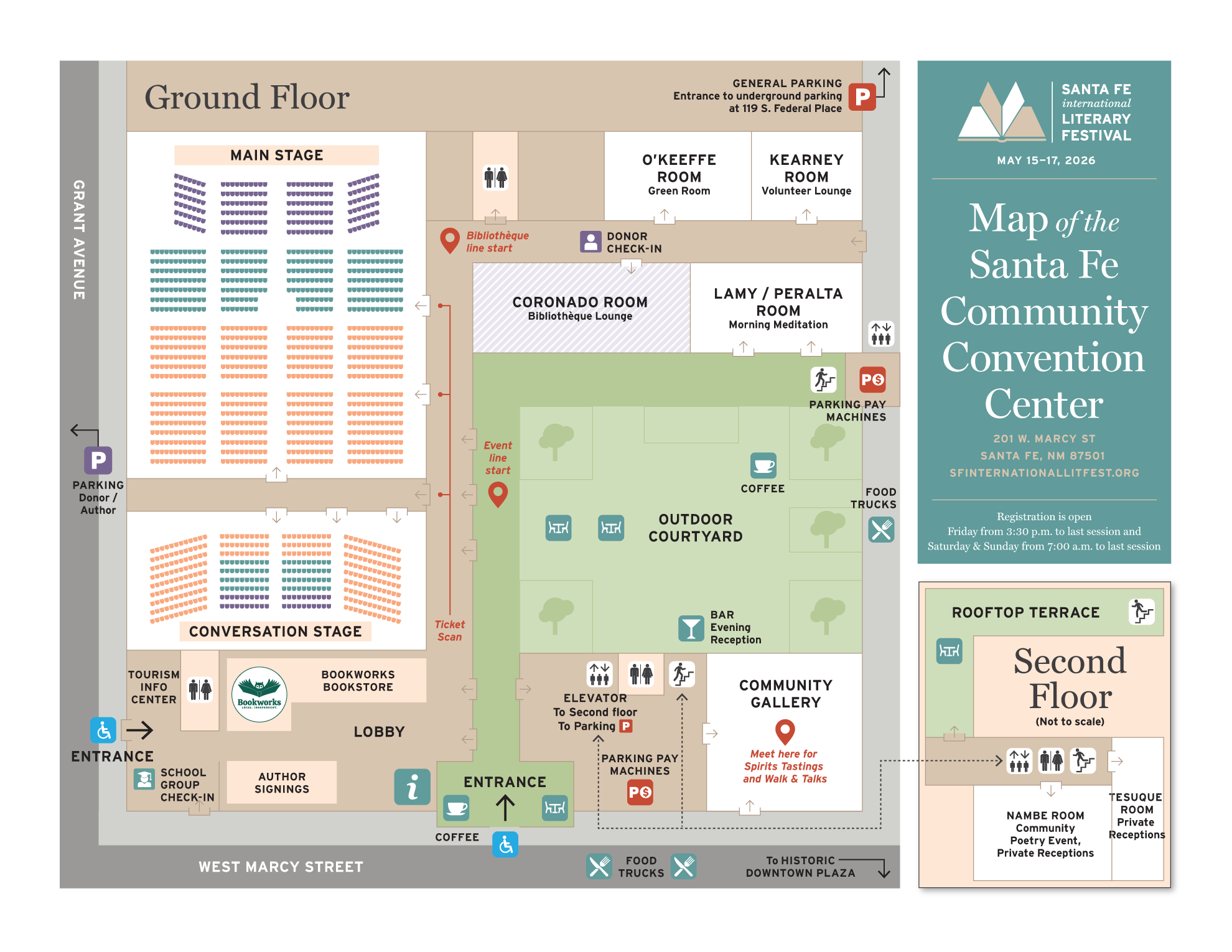 You may already be familiar with the Santa Fe Community Convention Center. During the Festival, spaces throughout the building are activated for author talks, signings, hospitality, and special programs.